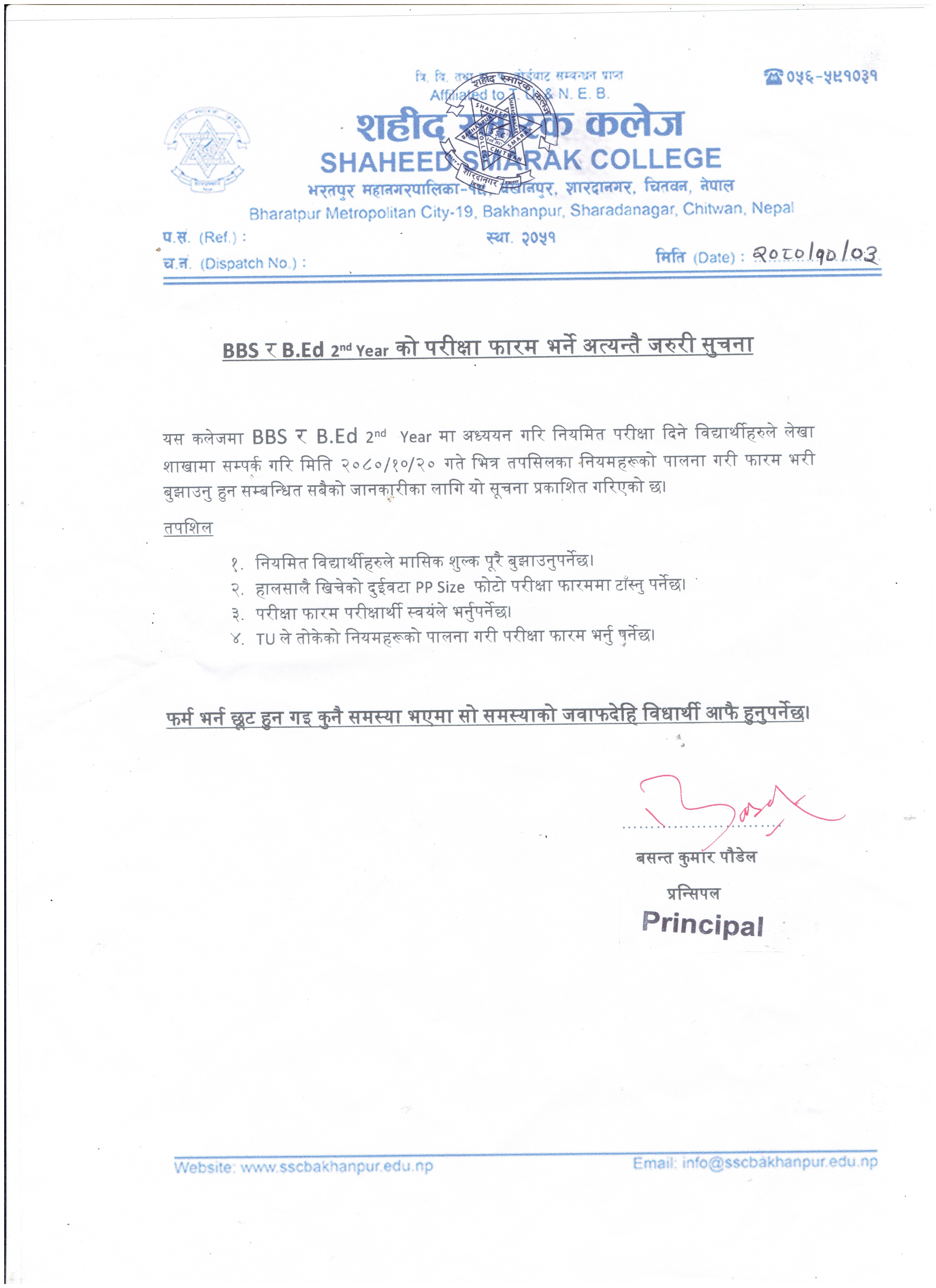 http://www.sscbakhanpur.edu.np/notice/bachelor-first-y…firm-open-notice/